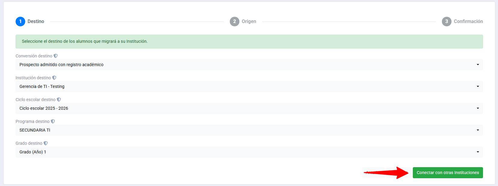 Estado del alumno: El alumno que deseas migrar debe estar inscrito actualmente en tu institución.